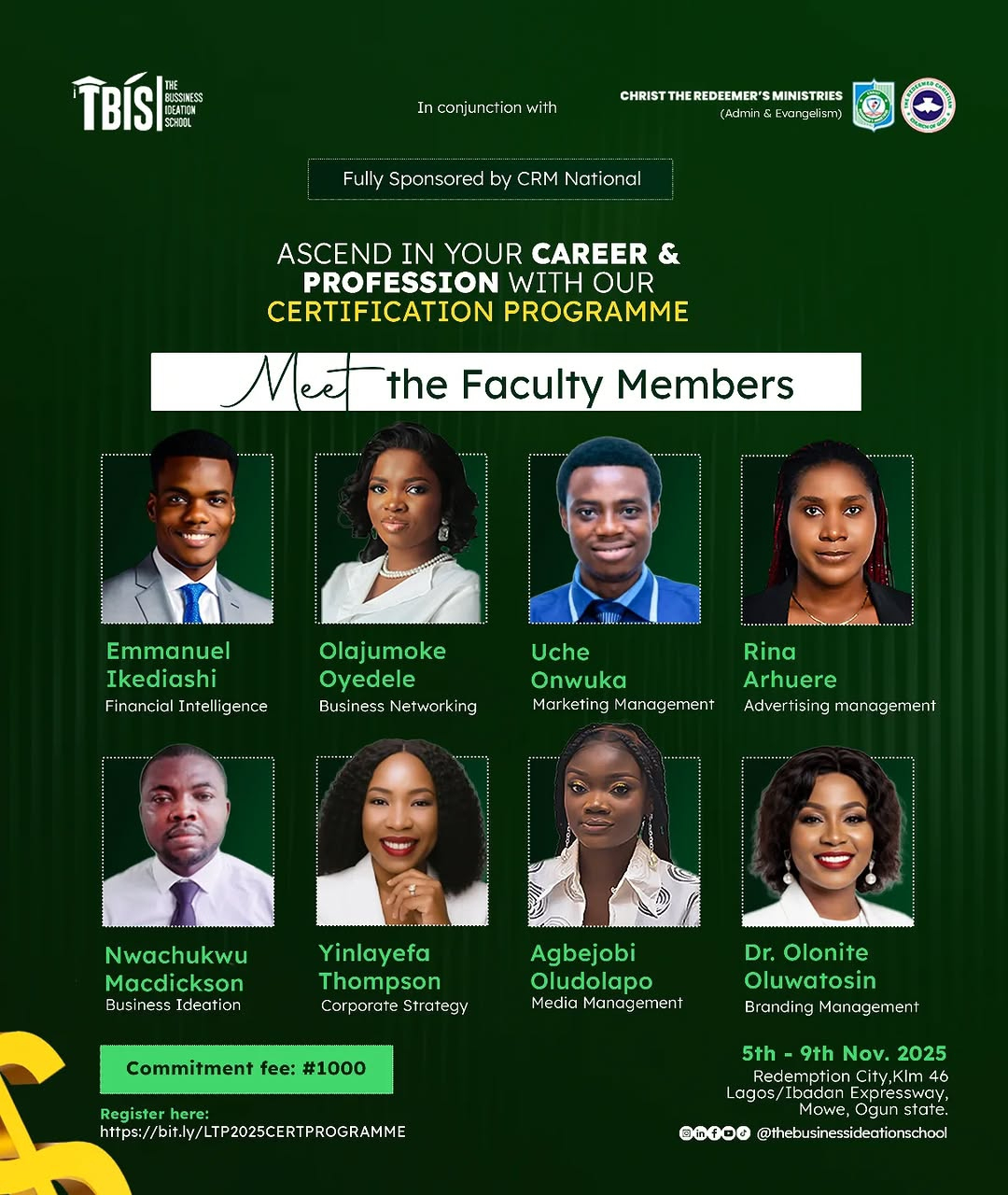 The Leadership Training Programme also featured sessions by practitioners from various industries, including Emmanuel Ikediashi, Nwachukwu Macdickson, Yinlayefa Thompson, Rina Arhuere, Olajumoke Oyedele, Uche Onwuka, and Oluwatosin Olonite reflecting the programme’s commitment to bridging faith, leadership, and professional excellence.